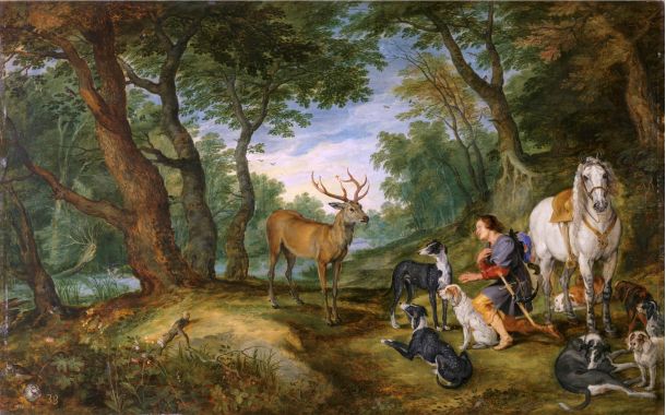 A quei tempi la caccia, forse con la sola esclusione dell’esercizio alle armi, era l’attività più praticata dalla nobiltà ed il nostro Santo Patrono vi dedicava molto tempo trascorrendo intere giornate all’inseguimento della più varia selvaggina. Si dice che Hubert fosse un rinomato arciere e che sovente esibisse la sua abilità di tiro nelle competizioni di corte. Tale passione ad un certo punto divenne preponderante nella sua vita tanto che vi si dedicava anche nei giorni festivi, fatto questo che era considerato sacrilego nel Medioevo, fortemente incentrato sul rispetto dei dogmi della Cristianità.